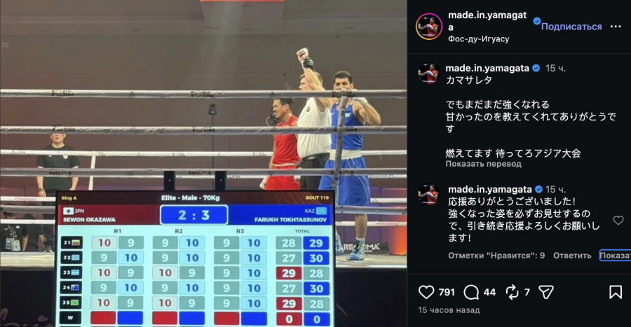 Осы орайда Жапония боксшысы әлеуметтік желісінде жазба жариялады.