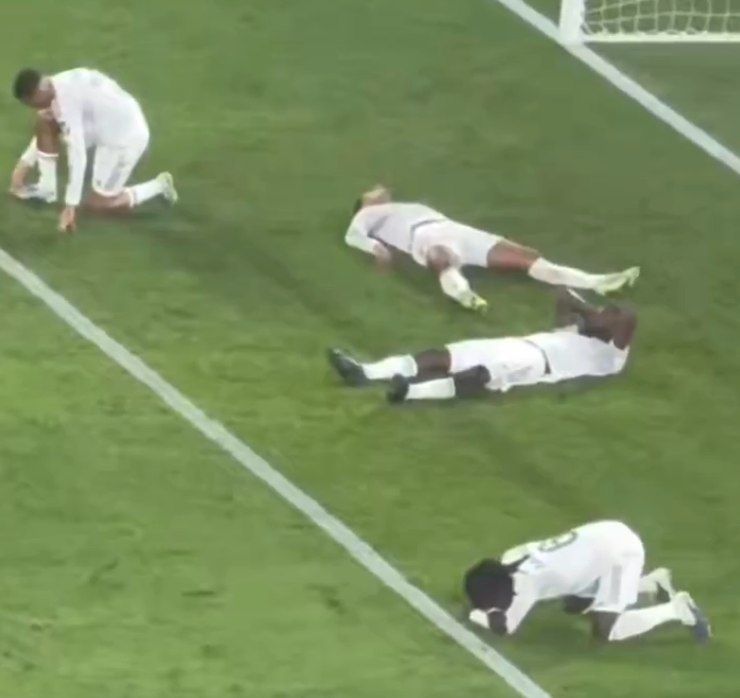 Мадридтік «Реал Мадрид» футболшылары Трент Александер-Арнольд, Джуд Беллингем, Антонио Рюдигер және Эдуарду Камавинга Испания чемпионатының 32-туры аясында «Бетис» командасымен өткен матчтан (1:1) кейін алаңға құлап түсті. Бұл ойында «қаймақтылар» 90+4 минутта жеңісті қолдан шығарып алды.