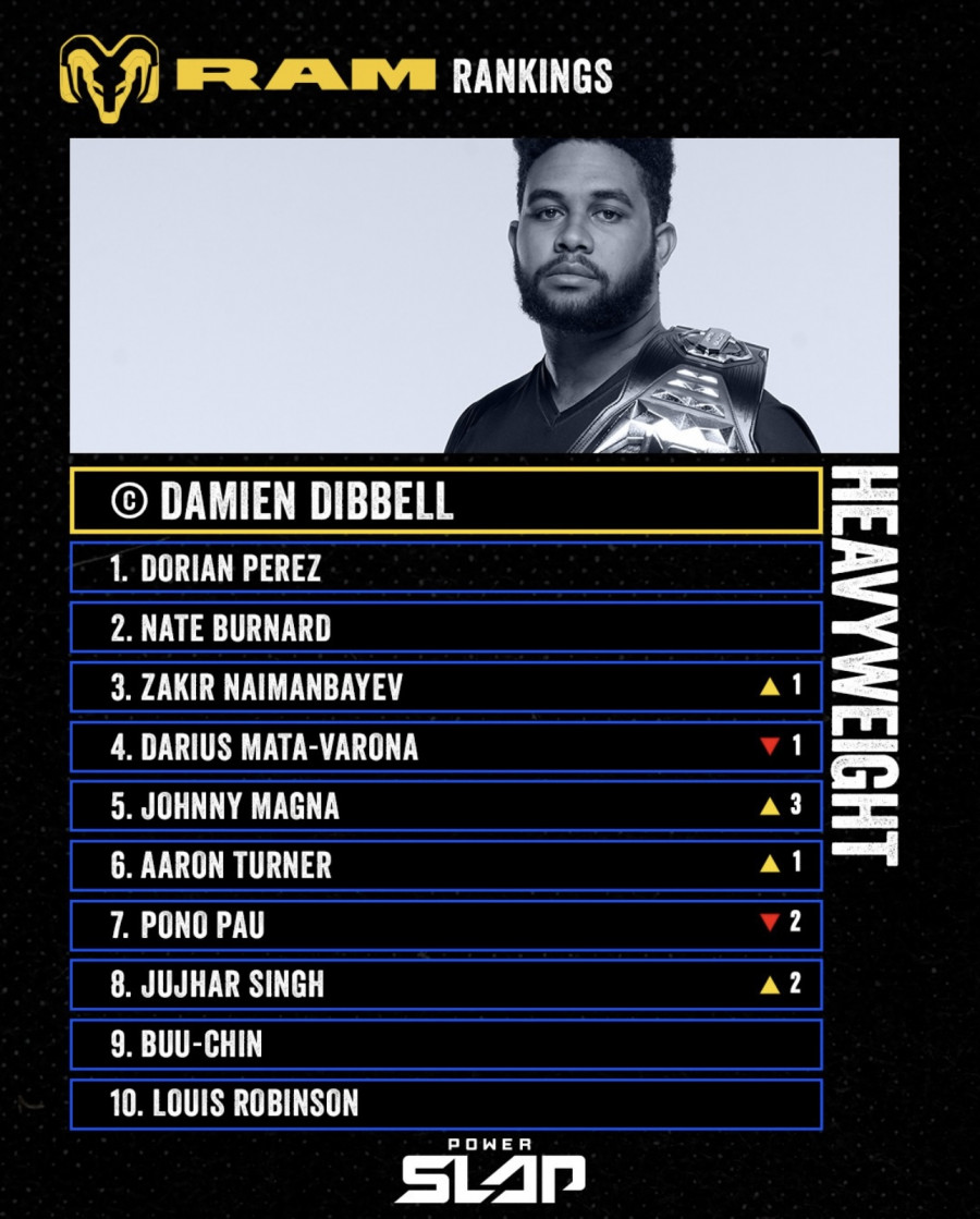 Жаңартылған рейтингте Найманбаев бір саты жоғарылап, үшінші орынға жайғасты. Қазір ол тек Дориан Перес пен Нейт Бёрнардтан кейін тұр. Ал ауыр салмақтағы чемпион — Дэмиен Диббелл.