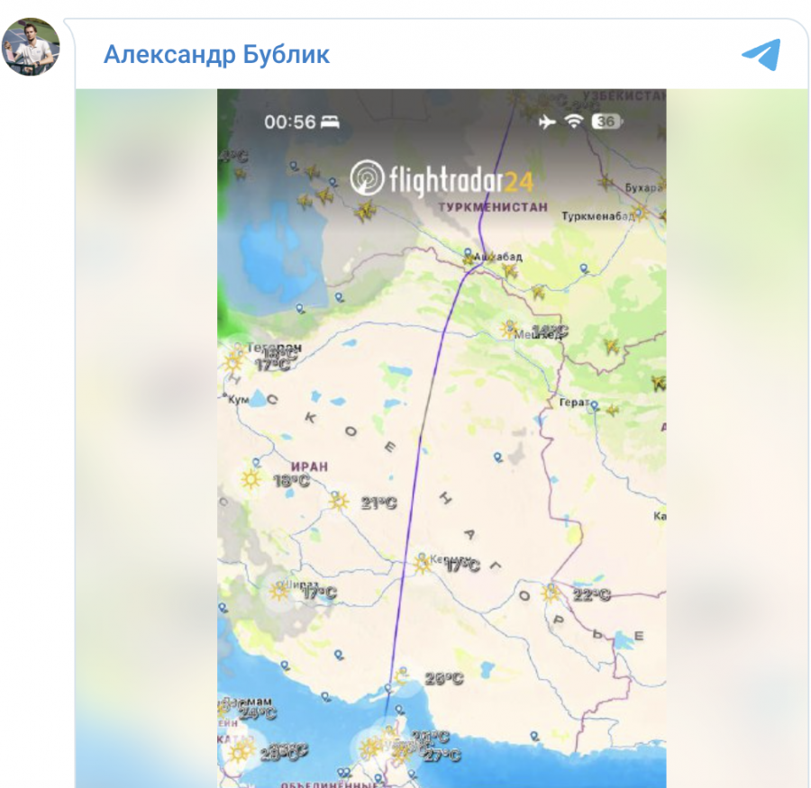 «Дубайдан ұшып шықтық, ішімнен аман-есен жетсек екен деп ойладым. Иранның әуе кеңістігінен шыққан соң жаңалықтарды ашсам, жағдай осылай болып жатыр екен», — деп жазды Бублик өзінің Telegram-арнасында.